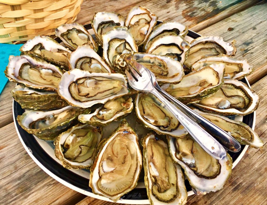 Eat oysters freshly picked from the sea for lunch or dinner at one of the many cabanes along the estuary, at the Avenue des Pécheurs. We enjoyed a sumptuous meal of oysters, bulots (sea snails) and crevettes with fresh bread and wine at La Cabane du Pirelon.