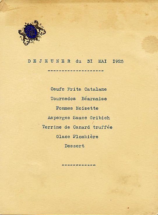This menu is taken from a journey on the Orient Express in 1925, but the meal would have been similar, as befitted those used to fine dining…